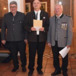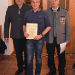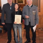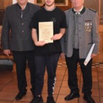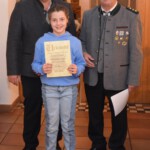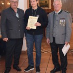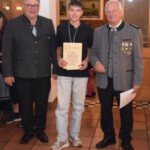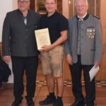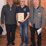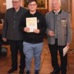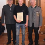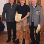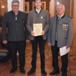Die Siegerehrung fand am Mittag im Rahmen der Feierlichkeiten zum 75-jährigen Jubiläum des BSSB statt. Nachdem ein Maibaum aufgestellt und ein Faßl Bier angezapft worden waren, stand Kilian bei wunderbarem Sonnenschein gemeinsam mit Florian Roth (2. Platz, 196,8 Ringen) und dem Löwen Guschu, dem Maskottchen der Bayerischen Sportschützenjugend, auf dem Treppchen am Siegerehrungsplatz. Auch seine Familie, die seinen Sport in hohem Maße unterstützt, verfolgte gespannt, wie der stellvertretende Bezirksschützenmeister Klaus Waldherr ihm das Abzeichen ansteckte und zum Erfolg gratulierte.