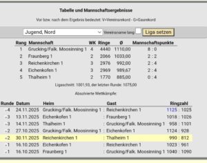 Ergebnis Jugendmannschaft Jugend / Sport 25.11.25 25.11.25 Die Schießgemeinschaft Germania Grucking und die Falken Moosinning sind in der Hinrunde ungeschlagen. Mit neuen Mannschaftrekord von 1125 Ring. Tolles Ergebnis
